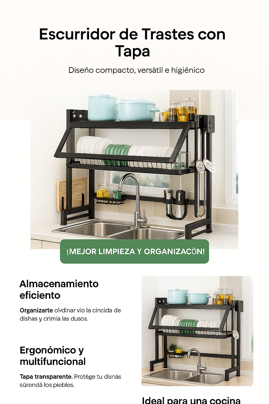 Transforma tu cocina con este escurridor multifuncional. Ideal para mantener tus platos secos, protegidos y perfectamente organizados sobre el fregadero.