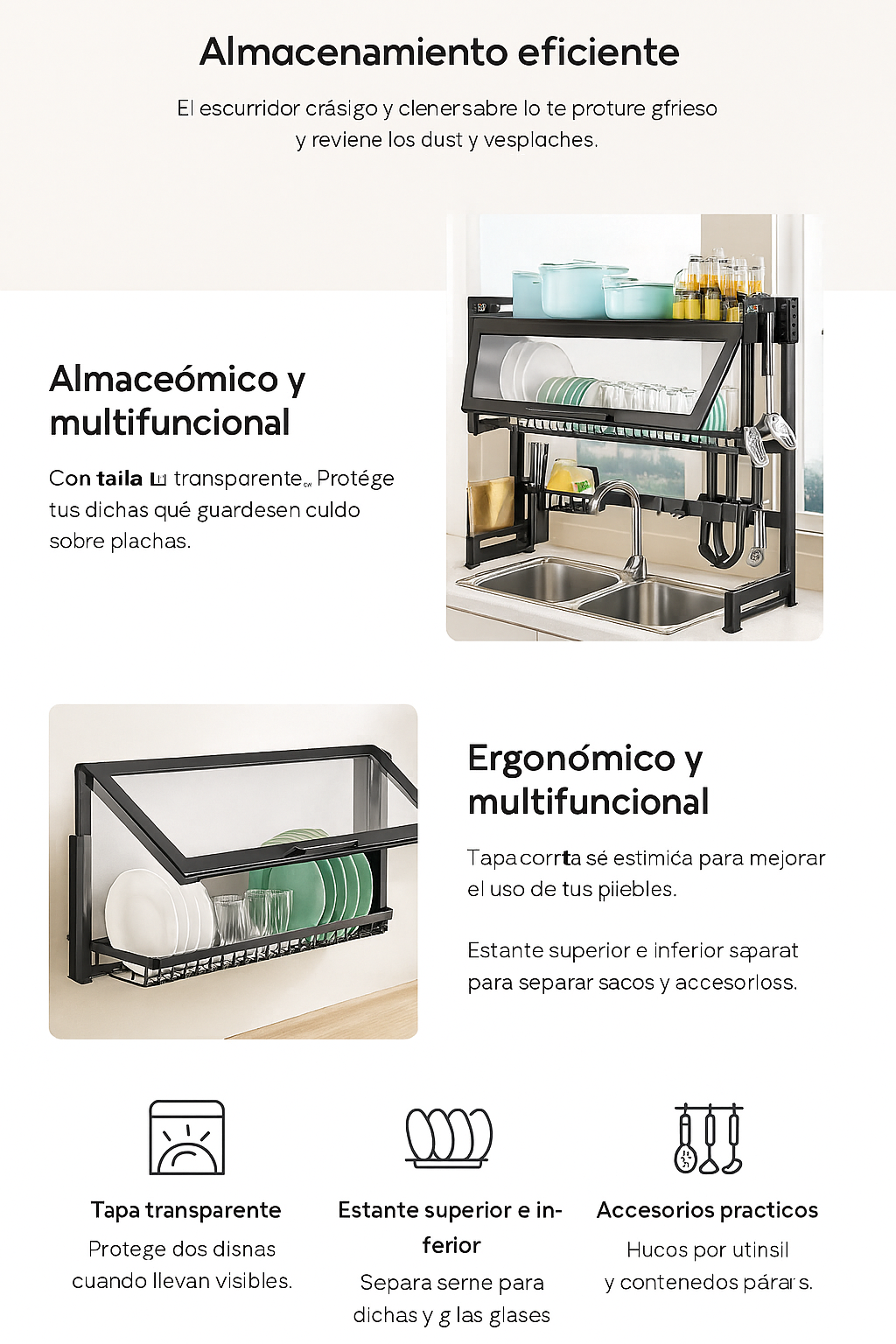 “¡Mi cocina se ve más limpia y moderna! El escurridor es súper práctico.” — Camila R., cliente verificado